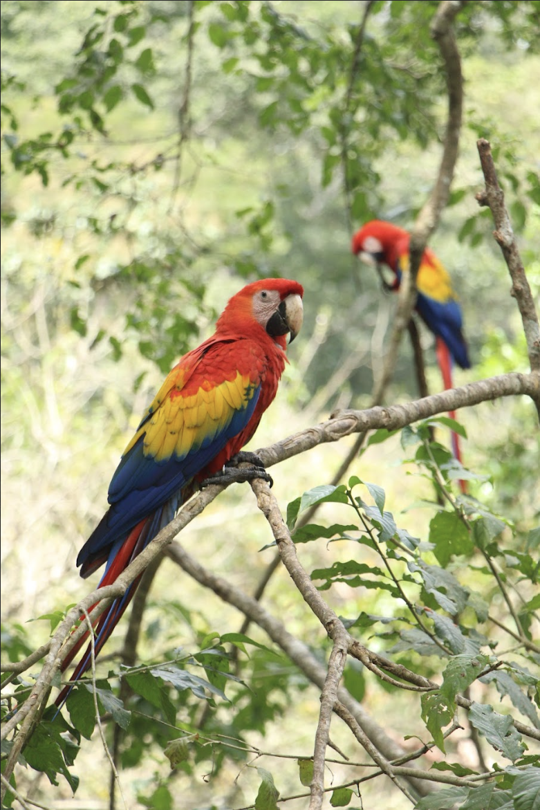 Since 2001, Macaw Mountain Bird Park has tirelessly worked to rescue, rehabilitate, breed, and reintroduce Scarlet Macaws into the skies of Copán Ruinas. In addition to caring for and releasing macaws born in captivity, they place artificial nests around the valley and monitor the reproduction of birds that already live in the wild.